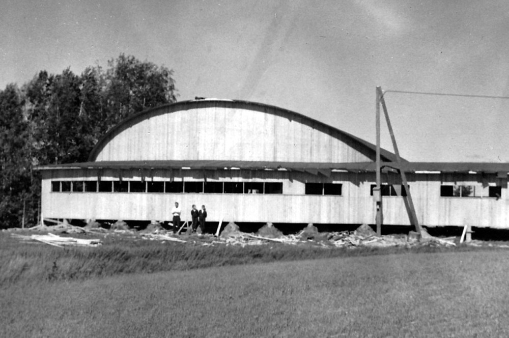Kaarevat kattotuolit piti tilata Turusta laivanrakentajilta. Sähkötyökaluja ei tällä 1960-luvun työmaalla ollut, käytössä olivat ainoastaan käsisaha, kirves, vasara ja vatupassi. Lavan avajaisia tanssittiin 4.7.1964.